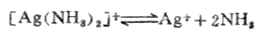 在水溶液中,[Ag(NH.3)2]+是稳定的,不过像其他弱电解质一样也有少数[Ag(NH.3)2]+发生离解,可用下式表示:
