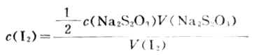 (2)标定I2溶液浓度吸取25.00mlI2溶液置于250ml锥形瓶中,加水50ml,用标定过的Na2S2O3标准溶液滴定至浅黄色后,加入0.2%淀粉溶液2-4滴,继续用Na2S2O3溶液滴定至蓝色恰好退去,根据下式计算I2溶液的浓度。