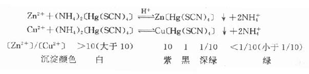 (2)取供试品溶液,以鸹硫酸酸化,加深.1%硫酸铜溶液1及硫氰酸汞铵度液数滴,即发生紫色沉淀,继续滴加硫氰酸汞铵试液,沉淀由紫色变为绿色。