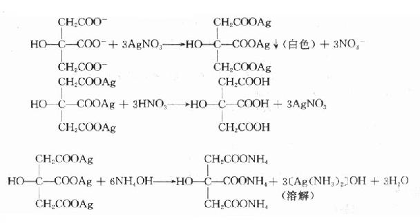 (1)取供品溶液,加稀盐酸,即后成白色凝乳状沉淀。分离,沉淀能在氨试液中溶解而形成[Ag(NH3)2]+络离子,继加硝酸,沉淀复生成。