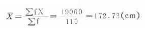 例18.2 某地1993年随机测量了该地110名20岁健康男大学生的身高(cm),资料如下,试计算其均数。