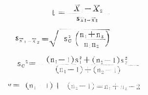 式中sx1-x2,为两样本均数之差的标准误,s2c为合并估计方差(combined estimate variance)。算得的统计量为t,按表19-4所示关系作出判断。