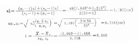 已知n1=n2=50,x1=12.002(cm),s1=0.948(cm);