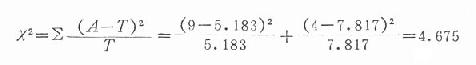 表23-5按检验假设算得甲、乙两组的预期复发数(即理论值)和实际数,分别为: