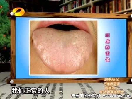 百科全说罗大伦 舌诊的注意事项: 1.早上刚起来不行,最标准的是在正午的室外楼的阴影里这个光线最好。 2.不要在进食或者漱口后马上进行舌诊。 血虚的症状与原因 血虚的症状:头晕,心悸,失眠,疲乏,记忆力减退。 血虚的原因:女性生理原因;现代人生活太劳累;脾胃虚弱也会引起血虚; 现在家长给孩子吃太多好吃的,造成孩子脾胃虚弱,造成孩子有可能贫血。 女性减肥一定要注意方式,不要节食减肥,这样有可能造成血虚,甚至影响到闭经及不能生孩子。最好的方法是多运动。
