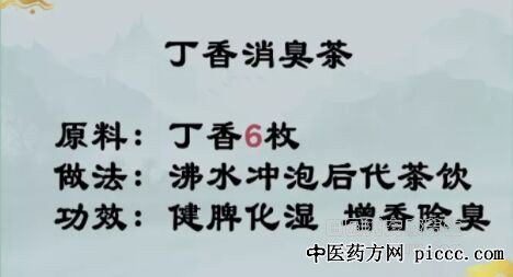 丁香消臭茶适合体内湿热初聚,体会不重的患者服用。