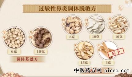 调体基础方:甘草补中益气,乌梅可以生津敛气,它们搭配起来可以补敛正气。 祛邪药搭子:防风、白芷和桑白皮可以清透肺中的伏热。如果对冷空气敏感,可再加入黄芪和肉桂。 小贴士: 药方中的肉桂要在起锅前5分钟放入。 三味常见药巧治过敏性咳嗽 过敏性咳嗽的特点: 1、咳嗽频繁:过敏性咳嗽常常是持续性的,而且可能会在特定环境或接触特定物质后加重。 2、咳嗽痒感:咳嗽时可能会伴随着喉咙或气道的痒感,患者有时会感到需要咳嗽才能缓解这种不适。 3、咳嗽多在夜间或清晨:过敏性咳嗽通常会在夜间或清晨加重,这可能与睡眠期间接触过敏原导致的气道刺激有关。 4、咳嗽伴有其他过敏症状:有些患者在咳嗽的同时可能还伴随着其他过敏症状,如打喷嚏、鼻塞、流涕等。 5、咳嗽不伴有呼吸困难:过敏性咳嗽通常不会导致呼吸困难或胸闷感,与哮喘等其他呼吸道疾病有所不同。 过敏性咳嗽经常被误认为是一般性咳嗽,可以根据以上特点,鉴别、诊断自己是否是过敏性咳嗽,对症用药。 中医认为痒自风来,过敏性咳嗽的病因是肺有伏风。治疗过敏性咳嗽,在扶正固本的基础上,还要加上祛风止痒、养阴润肺、补血润肺的药搭子。 过敏性咳嗽调体脱敏方