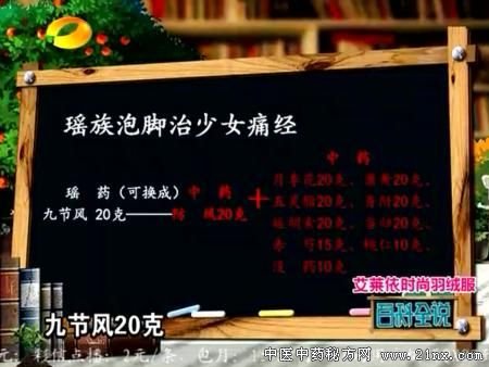 瑶医覃迅云上湖南卫视百科全说节目介绍 痛经泡脚药方 痛经用什么泡脚 瑶药:九节风20克(可换成防风20克)+月季花20克+蒲黄20克+五灵脂20克+香附20克+延胡索20克+当归20克+赤芍15克+桃仁10克+末药10克 女性生理期可以泡脚,注意不要按摩足底穴位。可以在平时泡脚来预防痛经。