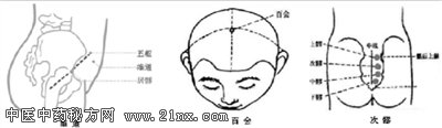 针灸方法是取百会穴,维道透子宫,次髎穴。令患者排小便后取舒适仰卧位,全身放松,腹式均匀呼吸。将所选穴位处充分暴露,常规消毒后取一次性无菌芒针以小于15度角针尖指向子宫穴方向,由维道进针向子宫穴透刺,待得气后,术者手持针柄不放,由食指末节横纹开始,用拇指如搓棉线样向前搓动至食指端(以感针下沉紧并可感到肌肉缠绕针体为度),接着施以快速、轻巧地提拉抖动手法10余下,强度则以患者可耐受,自觉阴部和小腹部有抽动感、子宫有上提感为度。留针10分钟后,术者手持针柄,拇指向后,反向捻针待针下有轻松感时缓慢起针,并以消毒棉球按压片刻。