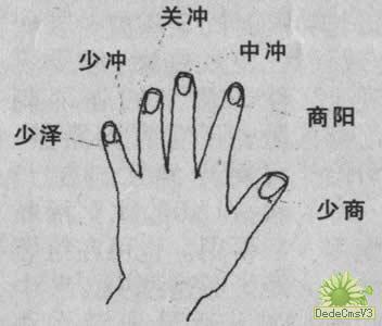 分布于手指端的穴位,一般都为所循经脉的井穴,在井穴点刺放血,可以治疗一些热病。一般点刺前,必须先洗干净手,将三棱针 (也可用缝衣针)消毒备用。先将所选井穴周围用手搓揉至发红发热,然后用另一手持三棱针快速点刺穴位,使之出血,可用手指挤压出血部位,以助出血,为的是让热随血而泄。最后将血擦拭干净即可。 一般上火引起的咽喉红肿热痛,可以取少商穴 (位于拇指桡侧指甲角旁 0.1寸)点刺放血。胃火上炎引起牙龈肿痛、出血等,取商阳穴(位于食指桡侧指甲角旁0.1寸)点刺放血。心火旺盛燥扰心神导致的心烦胸闷、心悸等不适.可以选少冲穴(小指桡侧指甲角旁0.1寸)点刺放血。风火头痛可取少泽(小指尺侧指甲角旁0.1寸)。感受暑热头痛、头晕以及小儿夜啼等均可取中冲穴(中指指端的中央)。小便赤涩疼痛,可取关冲穴(无名指尺侧指甲角旁0.1寸)。若是发热高烧甚至昏迷不醒者,可任意选择一二个指瑞的井穴来放血泄热,严重者可以选双侧的穴位。 (顾玉溪) |
