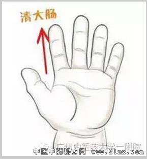 位置:食指端桡侧缘(靠近大拇指的一侧)至虎口成一直线。