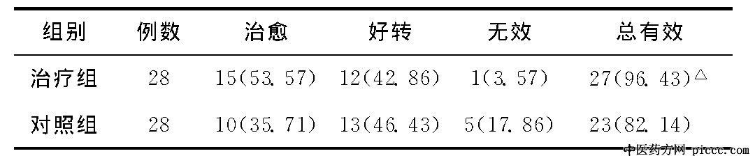 (1) 临床疗效比较两组患者临床疗效比较, 差异有统计学意义 (P<0.05) 。见表1。