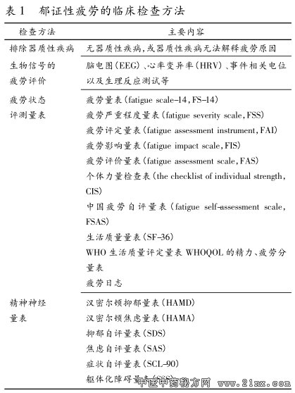 疲劳, 历代有疲乏、 神疲、 劳倦、 倦怠、 懈怠、 乏力以 及酸软困重等表述 [1 ] , 除指躯体疲乏劳倦外, 古代早已 认识到尚有神疲、 精神短少、 神思昏倦等属于精神困倦 及心理疲劳者。疲劳作为主观症状, 是机体在身体或 心理负荷失衡时出现的体力和(或)精力上的降低, 是 一种复杂的病理状态。 疲劳具有全身状态性的特征。一时感觉疲劳未可 称病, 若经常处于明显的疲劳状态, 经过休息或调整后 仍不能恢复, 则属病态。 疲劳与虚劳、 虚证既密切相关, 又有区别。疲劳是 指症状(或状态), 虚劳是指病证名, 虚证是指病证属 性。虚劳、 虚证多有疲劳症状, 但有疲劳症状者并非就 是虚劳、 虚证 [2 ] 。理解这一点至关重要。 令人遗憾的是, 当代中医长期以来临床每遇患者 诉说疲劳总是倾向于认为属于虚劳或虚证, 动辄以补 益为治, 殊不知如同存在郁证性虚劳一样 [2 ] , 还存在郁 证性疲劳之类型。郁证性疲劳概指七情内伤所导致的 疲劳。 1 郁证性疲劳的病因病机 1. 1 气血不足, 情志所致 气血亏虚看似疲劳之病 机, 其实缘于七情内伤。 清代吴尚先《理瀹骈文·脏腑》 载 :“血为忧煎, 气 随悲减, 令人饮食无味, 神倦肌瘦。 ” 表明悲忧导致气血 亏虚可致神倦肌瘦。 清代费伯雄《医醇賸义·劳伤》 载 :“劳者, 五脏积 劳也;伤者, 七情受伤也。百忧感其心, 万事劳其形, 有 限之气血, 消磨殆尽矣。思虑太过则心劳, 言语太多则肺劳, 怒郁日久则肝劳, 饥饱行役则脾劳, 酒色无度则 肾劳。方其初起, 气血尚盛, 虽日日劳之, 而殊不自知; 迨至愈劳愈虚, 胃中水谷之气, 一日所生之精血, 不足 以供一日之用, 于是荣血渐耗, 真气日亏, 头眩耳鸣, 心 烦神倦, 口燥咽干, 食少气短, 腰脚作痛, 种种俱见。 ” 指 出七情劳伤五脏, 终至耗伤荣血真气而致神倦。 清代阎纯玺 《胎产心法·蓐劳骨蒸论》 载 :“若富贵 之家, 虽有美食及药力以调养, 必有他事不如意, 而怒 动肝火, 耗伤其方生之血, 亦能致饮食减少, 虚羸体 倦。 ” 说明虚羸体倦可因事不如意而伤及气血, 此种气 血亏虚非关营养不良, 故亦非补益气血药物所能纠正, 需如意方能呈吉祥。 1. 2 心主神志, 劳神则倦 西晋王叔和《脉经·心手 少阴经病证第三》 载 :“愁忧思虑则伤心, 心伤则苦惊, 喜忘, 善怒。心伤者, 其人劳倦即头面赤而下重, 心中 痛彻背, 自发烦热, 当脐挑手, 其脉弦, 此为心脏伤所致 也。 ” 指出忧愁思虑伤心可致疲劳, 甚至可出现类似真 心痛的症状或诱发真心痛。 南朝陶弘景 《养生导引秘籍·养生咏玄集》 载 :“心 动则神疲。凡诸技俩营营与人角胜负者, 未有不减年 筭者也。技俩之中, 作诗弈棋, 劳神独甚。 ” 可见用心过 度可致神疲。 清代高学山《高注金匮要略·五脏风寒积聚病脉 证治第十一》 载 :“劳倦, 因劳而倦。凡外而劳形, 内而 劳神者皆是。 ” 其明确将劳倦分劳形与劳神二种, 后者 乃得之劳心。 清代陈士铎论述了思虑劳心致伤神、 困惫的必然 机理 。《辨证录·内伤门(二十三则)》 载 :“人有怔忡 善忘, 口淡舌燥, 多汗, 四肢疲软, 发热, 小便白而浊, 脉 虚大而数, 人以为内伤之病也, 谁知是由思虑过度而成 之者乎 。 ” 《辨证录·虚损门(十三则)》 载 :“人有用心 太过, 思虑终宵, 以至精神恍惚, 语言倦怠, 忽忽若有所 失, 腰脚沉重, 肢体困惫, 人以为怯症之成也, 谁知是劳 心以至伤神乎……夫心藏神, 神之久安于心者, 因心血 之旺也。思虑无穷, 劳其心矣。心劳则血必渐耗, 而神 无以养, 恍恍惚惚, 有无定之形。且神宜静不宜动, 神 动则心更动, 心动而血益亏, 血亏而神愈动, 虽有肾水 之资, 而血不能滋;虽有肝木之养, 而液不能入, 寡弱之 君, 无以自立;虽有良辅而四体不能强健, 此腰脚肢体 所以沉重而困惫也。治法必急救其心, 而救心必以安 神为主。 ” 其强调思虑无穷初则劳心伤血, 久则暗耗肝 肾精血, 无以良辅寡弱心君, 必致身重困惫, 当急安神 救心;否则, 必将进一步发展至心肾不交。如《辨证 录·梦遗门(七则)》 亦指出 :“人有用心过度, 心动不 宁, 以致梦遗者, 其症口渴舌干, 面红颧赤, 眼闭即遗, 一夜有遗数次者, 疲倦困顿, 人以为肾虚之过也, 谁知 是心虚之故乎。夫心喜宁静, 不喜过劳, 过劳则心动, 心动则火起而上炎, 火上炎则水火相隔, 心之气不能下 交于肾, 肾之关门大开矣。 ” 综合陈士铎所论可知, 思虑劳心初则四肢疲软, 程 度尚轻, 并伴怔忡善忘;继之腰脚沉重、 肢体困惫, 程度 渐重, 并伴精神恍惚、 语言倦怠;再后来发展至疲倦困 顿, 程度更重, 并伴梦遗频繁、 口渴舌干、 面红颧赤, 展 示了疲劳从劳心伤神到心肾不交由轻渐重的病机演变 过程。 心肾不交还可发展至阴虚火旺。如清代张璐《张 氏医通·诸伤门》 载 :“七情妄动, 形体疲劳, 阳火相迫, 致血错行, 脉洪多热, 口干便涩……” 1.3 肝主疏泄, 罢极之本 “肝者, 将军之官, 谋虑出 焉 ” (《素问·灵兰秘典论 》 );“肝者, 罢极之本, 魂之居 也 ” (《素问·六节藏象论》 )。《素问悬解·运气·六 节脏象论》 注解道 :“肝藏魂而主筋, 罢极则伤筋力, 故 肝为罢极之本, 魂之居也。 ” 肝主疏泄、 藏血、 主筋是“肝 为罢极之本” 的物质基础 [3 ] , 谋虑悲哀致肝失疏泄, 必 将影响肝藏血、 主筋的功能而致躯体罢极。明代皇甫 中 《明医指掌·经论总抄》 论及谋虑伤肝