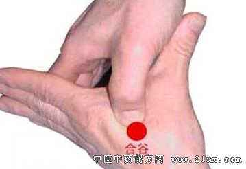 合谷穴:在手背,第一、第二掌骨间,从手掌横纹往肘部方向1.5寸。左右各一。 ![]()