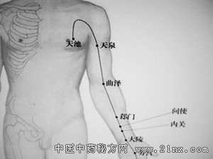 1.内关穴:手掌朝上,位于前臂正中,腕横纹上两寸,约两个半横指处。按内关可宁心安神、宽胸理气、调补阴阳气血、疏通经脉,是防治心脑血管疾病的特效穴位,经常按揉内关可使瘀阻的血管疏通。 2.神门穴:手腕内侧,小指边的腕横纹上。神门穴专治心病,出现心脏早搏、房颤时,赶紧按摩按摩神门穴,可及时缓解症状。此穴可补益心经元气,濡养心脏。 3.中冲穴:位于双手中指指尖端中央,常用于疼痛、昏迷、痛经时的急救,有调节心率的作用,主治心绞痛、心肌炎等,可用拇指指甲按切。 4.天泉穴:腋下横纹两寸处。此穴专治由于心血瘀阻而致的胸闷、气短、胸痛。心跳加快,或胸闷时,可用手指用力按压天泉穴3~5秒,停1~2秒后再继续按压,连续按2~3分钟,对心跳过速、胸口疼痛、心悸不安效果非常好。 5.伏兔穴: 位于大腿前面,正坐屈膝成90度,对方以手腕掌第一横纹抵其膝上中点,手指并拢压在大腿上,中指到达的地方就是此穴。有缓解心慌和心跳过速,补养心血的功效。按揉时不要点揉和强刺激它,要用掌跟仔细按揉。 6.曲泽穴:肘微屈,在肘横纹中,肱二头肌的内侧缘,常按此穴有清心泻火、除烦安神的作用。如出现心胸烦热、头晕脑涨,或有高血压、冠心病等症状都可以通过按摩曲泽穴来进行调节。 在按压手法上,心率过慢的人手法宜快些,心率过速的人手法宜慢些。按摩频率一般为每分钟按压60~80次,每天早晚各1次,每次每穴按压3~5分钟。
