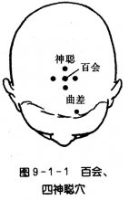[出处]《圣惠方》“在百会四面,各相去同身寸一寸是穴”。 [别名]神聪。 [位置]在头顶部,当百会前后左右各1寸,共4个穴。(图9—1—1) ![]() [简易取法]在头顶正中,先取百会穴,再于百会穴前后左右相去1寸取穴。 [解剖]在帽状腱膜中,有枕动、静脉,颞浅动、静脉顶支和眶上动、静脉吻合;布有枕大神经、耳颞神经及眶上神经分支。 [功用]宁心安神,明目聪耳。 [主治]头痛,目眩,失眠,健忘,癫狂,中风,偏瘫,耳聋,眼疾。 [刺灸法]平刺0.3—0.8寸;可灸。 [配穴举例]配神门、三阴交,有宁心安神的作用,主治失眠;配太冲、风池,有通经活络的作用,主治头痛,头昏。 |