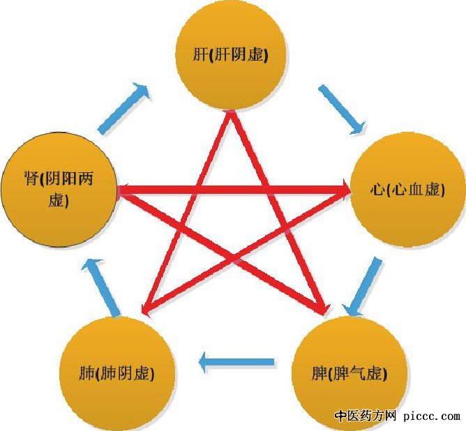 2.证候传变中医五脏之间存在相生、相克的关系, 本文探讨慢性湿疹脏腑传变规律, 见图1。