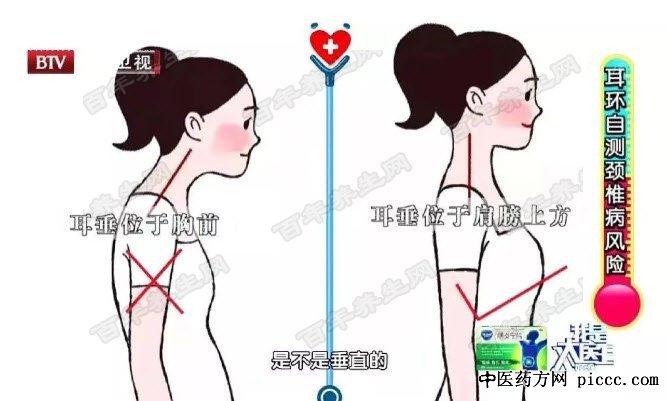 图:耳环自测颈椎生理曲度 生活中的“低头族”随处可见,但除了低头玩手机外,一些被忽略的不当姿势也会让人成为“隐形低头族”,比如:开车姿势不当、背包不当。 很多人会将车座椅调得比较靠后,但开车时身体会不自觉地前倾,这个姿势对颈椎负荷很大,时间一长颈椎就容易疲劳受损。在车内坐好,将头部靠在头枕上,调节椅背,直至耳垂与肩膀、腰部在一条直线上。 背包不对称不利于颈椎健康;双肩包背带过长、背包过重时,身体会不自觉地向前倾,造成“隐形低头”,损伤颈椎。建议调节背带长度,使肩带紧贴肩膀部位;背包要紧贴脊柱,直立时保持背包与后背的间距小于一个拳头;背包包底要落在腰的上方。也可偶尔把背包背在身前。 擀面杖自测腰椎曲度:身体放松,紧贴墙面站立,腰部与墙的空隙能轻松塞下直径3cm的擀面杖,预示腰椎健康。如果腰与墙面的空隙不足3cm,可能预示腰椎曲度改变、腰椎管狭窄。 随着年龄增长,腰椎退变,很多老年人腰椎前突越来越小。实际上这是一个普遍现象,即腰椎管狭窄,为了让腰椎管横断面的面积扩大,腰椎相对曲线就会不由自主地变小,甚至直立,称为平背畸形。 护腰小妙招:生活中经常进行协调腰背肌的锻炼,如:游泳、小燕飞、俯卧撑、平板支撑等,都能很好地锻炼后背核心肌群,起到保护腰椎的作用。 此外,选对腰带也有助于护腰。正常的传导除了依靠肌肉以外,还有30%的重量是依靠腹压来传导的,而合适的腰带,能瞬间增加腹压,缓解腰部压力。 建议选择3cm以上的宽腰带,扎腰带时可收紧小腹,在最舒适的松紧下再紧一格,可增加腹压,保护腰椎。