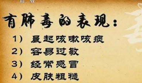 在家自我测试,如果在15里面内不能吹灭蜡烛,这时,您可能就需要到医院进行检查了,同时也可以仔细听听接下来杜主任为我们分析,肺部有毒素的表现都有什么呢? 肺毒的早期引起的皮肤的颜色改变,可能会出现晦暗,皮肤光泽度的下降,白皙程度的下降,到了后期时间比较长,毒邪积聚的比较多,比较严重的时候,会出现皮肤颜色发暗,有的可能会出现皮肤会出现铁锈一般的颜色。 肺和大肠互为脏腑,相表里,大肠的顺利的排泄,与肺气的充足、正常是密切相关的,当一个人出现哮喘,或者哮喘比较严重的时候,绝大部分都伴有排便的异常。 五脏均与情志相关,而肺在情志方面,它主要表现为悲伤和忧愁。肺部一旦有毒素积压就会肤色晦暗,便秘,而且心情也会不好,多愁伤感等常见表现。而日常生活中吸烟,辐射,空气污染,空气中的尘埃,细菌等原因都会导致肺部淤积毒素。因此,日常生活中,我们需要时刻保持健康的生活方式,来避免肺部毒素的堆积,接下来让我们继续听听杜主任对于肺毒堆积过多,将会导致何种病症的讲解。 肺在失去了它的宣发和速降功能的时候,就容易感冒,容易出现气积的上逆,导致咳嗽,导致咽部的不适,这是其中的一个疾病的表现。我们肺失宣发和速降功能的时候,导致肺气上逆,它可以出现咳嗽、哮喘,有的人甚至出现哮症为主的,就是喉中如作水击声。伴有咳嗽的时候,还伴有咳血的现象,主要我们考虑的疾病,像支气管扩张,还有我们现在比较多见的,像肺结核,还有肺癌。 通过泡脚,锻炼发汗的方式排除毒素。每日按照顺时针逆时针各36次的方法按摩合谷穴,同时也可以在肺俞穴通过刮痧、拔罐的方式排毒。呼吸新鲜空气对排除肺部毒素也有很好的作用。凌晨3点至5点为肺部排毒时间,切忌熬夜。经常食用雪梨、银耳、百合等白色食物可起到润肺、润燥等作用,有助于肺部排毒。 大厨家常菜:冰糖雪梨南瓜盅。