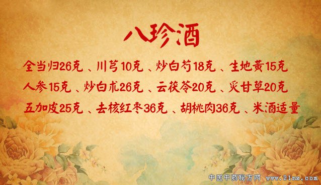 本页提供2016年12月9日北京卫视养生堂节目视频全集和要点笔记,节目请到的嘉宾是于振宣。主题是《米酒中的养生术》。主要介绍如何用米酒来泡药酒,人参固本酒、固本米酒、八珍酒的制作方法等相关内容,中医中药秘方网提供视频全集的在线观看和主要内容介绍(节目要点笔记)。 于振宣:中国中医科学院西苑医院综合内科主任医师、教授。 米酒中的营养成分易于人体吸收,是中老年人、孕产妇和身体虚弱者补气养血之佳品。用米酒制作成的药酒,适应人群广泛,酒精度低,很多人都可以喝一些。而且制作方法相对简单,无需浸泡十几二十天,第二天就可以饮用。但是,米酒作为酒基来讲,会比白酒制作的药酒功效差一些,没有那么强的酒精溶媒的作用,毕竟酒精度比较低,所以米酒是在白酒和不能喝酒的人群中取得的一个平衡点,更适应大部分人群。我们可以如何用米酒来泡药酒呢?请关注由中国中医科学院西苑医院综合内科主任医师教授于振宣带来的《米酒中的养生术》。 在现场于振宣老师为大家推荐了一个由经典名方《人参固本酒》化裁而来的《固本米酒》,我们可以用何首乌60克、枸杞子60克、熟地黄60克、鹿角片60克,像熬药一样,煎熬20分钟,放置1至2天即可服用。但是要注意米酒的保质期相比白酒要短很多,建议一周左右喝完。