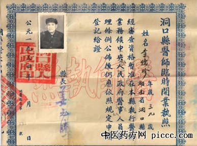 “家父幼年学医,新中国成立前就独立门户,开办一家私人中医诊所,医名已然远播,每天前来求诊的患者很多,不仅有洞口县县内的,还有邻近武冈、邵阳的,甚至还有省会长沙的。县里成立中医院之前,县卫生科领导上门征询父亲意见,问他愿不愿意参加新中国的中医院建设,他二话没说就同意了,并且马上关闭了自家的诊所,到县中医院当了一名坐堂医生,一当就当到退休。”李志和如是介绍其父李儒珍这张执照背后的故事。