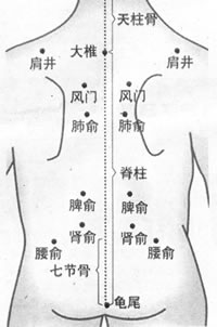 现在,许多医院(医生)的 “冬病夏治”药物敷贴、针灸、拔火罐等方法采用的均是大椎、定喘(双侧)、风门(双侧)、肺俞 (双侧)、心俞(双侧)、脾俞(双侧)、竹俞(双侧)、人突、膻小等几个常用保健穴,而这些穴位大部分都分布在背部上。