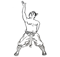 左手上顶,右手下探。
