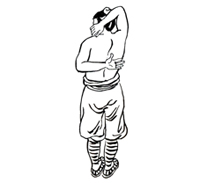 动作要领:右手臂上举,夹抱头部。