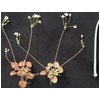 喉咙草《中药大辞典》:喉咙草图片 拼音Hóu Lónɡ Cǎo 别名佛顶珠、地胡椒、五岳朝天、小虎耳草(《草木便方》),铜钱草、白花草(《中国树木分类学》),索河花(《植物名汇》),五朵云、汉先桃草(《中国药植志》),喉辫草(《浙江中医杂志》(4):174,1957),小一口血(《四川中药志》),喉蛾草(《本草推陈》),清明花(《贵州草药》)),白花珍珠草、五角星草(《上海常用中草药》),天星草、天吊冬、顶珠草(《云南中草药》),仙牛桃、金牛草(《陕西中草药》)。 出处《中国药植志》 来源为报春花科植物点地梅的全草或果实。清明前后采收全草,晒干。 原形态一年生草本,高8~15厘米,全体被有白色细柔毛。根出叶丛生,呈莲座状平铺于地上,有细柄;叶片近圆形,径约15毫米,基部略呈心形,边缘呈圆齿状,上面绿色,有时局部带紫红色。花茎自叶丛抽出,3~7枝,顶端有小伞梗5~7,排列为伞形花序;萼绿色,5深裂,裂片卵形,宿存;花冠白色,下部愈合成短管形,上部5裂,向外平展;雄蕊5;子房球形,柱头不明显。蒴果球形,直径2~3毫米,成熟时5瓣裂。种子多数,细小,棕色。花期4月。果期5月。 生境分部生于草地、路旁,牧场上。分布很广,北至河北南至广东、云南,西至四川、青海等地均有野生。 药理作用喉咙草全草乙醇浸出液,经醋酸铅去杂质后之生理盐水溶液,对冷血及温血动物的离体、在体心脏均表现明显的强心作用;对兔、猫静脉注射后血压逐渐升高,死亡前血压下降;对离体家兔肠管和大鼠子宫呈现兴奋作用;对象兔及豚鼠去纤维血均表现较强的溶血现象;如用戊醇及碱式醋酸铅等除去其中所含的皂甙后,对离体蛙、大白鼠心脏及在体豚鼠心脏,仍有明显的强心作用,但所用剂量较前述者有所增加,经处理后的溶液,不含非特异性兴奋心脏的物质,如钙及鞣质,而有糖或其他还原性物质存在。 性味《贵阳民间药草》:"辛甘,微寒,无毒。" 功能主治祛风,清热,消肿,解毒。治咽喉肿痛,口疮,赤眼,目翳,正、偏头痛,牙痛,风湿,哮喘,淋、浊、崩、带,疔疮肿毒,跌打,烫伤。 ①《分类草药性》:"解毒。治蛇伤,诸淋,涂火疔疮,泡酒扫毒除肿。" ②《中国药植志》:"治喉痛,跌打损伤。" ③《贵州民间方药集》:"新鲜果实液汁点眼,可治眼热,去眼翳;全草,治跌打损伤,筋骨疼痛,腰酸背痛;外治蛇咬伤,汤火伤,疔疮。" ④《民间常用草药汇编》:"治偏正头痛,牙痛。" ⑤《贵阳民间药草》:"祛风清热,治劳伤腰痛,咽痛口糜。" ⑥《四川中药志》:"治遗精,崩症及寒湿带下而虚弱者。" 用法用量内服:煎汤,1~3钱;研末或浸酒。外用:捣敷或研末掺。 复方①治咽喉肿痛,白口疮:佛顶珠为极细末,吹在患处。 ②治跌打损伤或久坐腰酸腰痛:佛顶珠一两,仙桃草五钱,乱头发一钱。泡酒半斤。一天二次,每次服量不超过一两。 ③治咯血:佛顶珠三钱。炕干研末兑酒吞。 ④治五淋白浊:佛顶珠一两,苦竹一两。白糖一两,加水三小碗,煎汤二碗,一剂三次分服。(①方以下出《贵阳民间药草》) ⑤治风湿关节痛:佛顶珠五钱。煎水服。(《贵州草药》) ⑥治偏正头痛、牙痛、风火赤眼:点地梅三钱至一两。煎服。(《上海常用中草药》) ⑦治哮喘:鲜天星草-至二两。水煎服。(《云南中草药》) 摘录《中药大辞典》 《中华本草》:喉咙草拼音Hóu Lónɡ Cǎo 别名佛顶珠、地胡椒、五岳朝天、小虎耳草、铜钱草、白花草、索河花、五朵云、汉先挑草、喉癣草、小一口血、喉蛾草、清明花、白花珍珠草、五角星草、天星草、天吊冬、顶珠草、仙牛桃、金牛草 出处出自《中国药植树志》 来源药材基源:为报春花科植物点地梅的全草或果实。 拉丁植物动物矿物名:Androsace umbellata (Lour.)Merr.[Drosera umbellata Lour.;Primula umbellata(Lour.) Bentv.] 采收和储藏:清明前后采收全草,晒干。 原形态一年生或二年生无茎草本。全株被节状的细柔毛。主根不明显,具多数须根。叶全部基生,平铺地面; 叶柄长1-4cm,被开展的柔毛;叶片近圆形或卵圆形,直径5-2omm,先端钝圆,基部浅心形至近圆形,边缘具三角状钝牙齿,两面均被贴伏的短柔毛。花葶通常数枚自叶丛中抽出,高4-15cm,被白色短柔毛。伞形花序4-15花;苞片数枚,卵形至披针形,长3.5-4mm;花梗纤细,长1-3cm,果时伸长可达6cm,被柔毛并杂生短柄腺体;花萼5深裂,几达基部,裂片长卵形或卵状披针形,长3-4mm,果期伸长达5mm并呈星状水平开展,具3-6条明显纵脉;花冠白色,直径4-6mm,筒部长约2mm,短于花萼,喉部黄色, 5裂,裂片倒卵状长圆形,长2.5-3mm,宽1.5-2mm;雄蕊着生于花冠筒中部,长约1.5mm,花丝短;于房球形,花柱短,胚珠多数。蒴果近球形,直径2.5-4mm,先端5瓣裂,裂瓣膜质,白色,具宿存花萼。种子棕褐色,长圆状多面体形,直径0.6-0·8mm。花期4-5月,果期6月。 生境分部生态环境:生于向阳地、疏林下及林绿、草地等处。 资源分布:分布于东北、华北和秦岭以南各地。 性状性状鉴别 全草皱缩,被白色节状细柔毛.根细须状。叶基生,多皱缩碎落,完整者呈近圆形或卵圆形,黄绿色,直径5-20mm,边缘具三角状钝牙齿,两面均被贴伏的短柔毛;叶柄长1.0-4.Ocm,有白毛。花葶纤细,有的可见顶生伞形花序,小花浅黄色,或已结成球形蒴果,具深裂的宿萼。质脆,易碎。气微,味辛而微苦。 化学成分全草含皂甙、鞣质酚类物质和糖类,并有生物碱沉淀反应[1]。 药理作用喉咙草全草乙醇浸出液,经醋酸铅去杂质后之生理盐水溶液,对冷血及温血动物的离体、在体心脏均表现明显的强