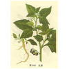 龙葵根《中药大辞典》:龙葵根图片 拼音Lónɡ Kuí Gēn 出处《本草图经》 来源茄科植物龙葵的根,夏、秋采收。 性味《纲目》:"苦微甘,寒,无毒。" 功能主治治痢疾,淋浊,白带,跌打损伤,痈疽肿毒。 ①《本草图经》:"龙葵根与木通、胡荽煎汤服,通利小便。" ②《纲目》:"疗痈疽肿毒,跌扑伤损,消肿散血。" 用法用量内服:煎汤,3~5钱(鲜者0.8~1两)。外用:捣敷或研末调敷。 注意《福建民间草药》:"凡虚寒而无实热者忌用。" 复方①治痢疾,妇女白带,男子淋浊:鲜龙葵根八钱至一两(干的五至八钱),和水煎成半小碗,饭前服,日服两次。(《福建民间草药》) ②治睾丸炎:龙葵鲜根、灯笼草各-两,青皮鸭蛋二枚。加水同煮熟,服汤食蛋。(《泉州本草》) ③治风牙虫痛:龙葵根煎汤含漱。(《泉州本草》) ④治发背痈疽成疮者:龙葵根一两,麝香一分(研)。先捣龙葵根,罗为末,入麝香研令匀,涂于疮上。(《本草图经》) 摘录《中药大辞典》 《中华本草》:龙葵根拼音Lónɡ Kuí Gēn 英文名Root of Black Nightshade 出处出自《本草图经》。 来源药材基源:为茄科植物龙葵的根。 拉丁植物动物矿物名:Solanum nigrum L. 采收和储藏:夏、秋季采挖,鲜用或晒干。 原形态一年生草本,高约25-100cm。茎直立,有棱角或不明显,近无毛或稀被细毛。叶互生;叶柄长1-2cm;叶片卵形,先端短尖,基部楔形或宽楔形并下延至叶柄,通常长2.5-10cm,宽1.5-5.5cm,全缘或具不规则波状粗锯齿,光滑或两面均被稀疏短柔毛。蝎尾状聚伞花序腋外生,由3-6(-10)朵花组成;花梗长,5深裂,裂片卵圆形,长约2mm,雄蕊5,着生花冠筒口,花丝分离,花药黄色,顶孔向内;雌蕊1,球形,子房2室,花柱下半部密生白色柔毛,柱头圆形。浆果球形,有光泽,直径约8mm,成熟时黑色;种子多数扁圆形。花、果期9-10月。 性味味苦;性寒 功能主治清热利湿;活血解毒。主痢疾;淋浊;尿路结石,白带,风火牙痛,跌打抽伤,痈疽肿毒。 用法用量内服:煎汤,9-15g,鲜品加倍。外用:适量,捣敷或研末调敷。 注意《福建民间草药》:凡虚寒而无实热者忌用。 各家论述1.《本草图经》:龙葵根与木通、胡荽煎汤服,通利小便。 2.《纲目》:疗痈疽肿毒,跌扑伤损,消肿散血。 摘录《中华本草》 |