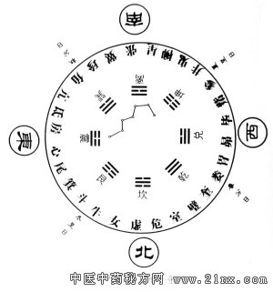 《帝王世纪》云:“伏羲氏……乃尝百草而制九针,以拯妖枉焉”。伏羲尝百药创建了中国最早的中药学,天水自然地理湿润,四季分明,光照充足,是野生药材生长得天独厚的天然药苑,天水山川有约600余种中草药,市场流通的常用的约400余种。我国学者张光华指出,远古时代生产力低下,人们采摘野果、根茎、花、叶为主要的食物,居住条件十分简陋,感风寒,中酷暑,食毒物,各种疾病随时发生。以伏羲为代表的中国先民,经过无数次的尝试,初步总结认识了生长在阴湿和阳坡地带,各种常见植物的药用价值,形成了中国最早的中药学。在治疗手段上,伏羲氏把目光投向砭石,用石头磨制成各种形状的石针,用以刺激人体阴经和阳经某些部位达到治疗的目的。但九针在此时尚无明确的名称,其名称的确定是《灵枢》作者的成就。但伏羲既以制出石针,最初的经络、穴位等在当时也应初现端倪,只是尚不如《灵枢》系统完整罢了。因此,数千年来伏羲被我国医药学界奉为医药学、针灸学的始祖。 2.五行学说对中医学的影响 五行学说在现实生活中应用极为普遍。五行(金、木、水、火、土)与阴阳一样,最初是独立的学说,随着伏羲阴阳、五行、八卦学说的广泛应用,其巫术、占卜、风水等的兴起,五行与阴阳被当时的不同学术流派综合推崇为阴阳五行学说,与远古及后世朴素的自然科学和社会科学有着密切的联系。五行是构成物质世界所不可缺少的最基本物质。五行之中,东方通于木,西方属金,南方为火,北方为水,中间为土,这五种物质之间的相互滋生、相互制约的运动变化构成了自然界物质的不同属性。五行学说运用于中医学,主要是利用五种元素的特性来形容各脏腑器官的生理功能,以及阐明相互之间的关系、生理现象及病理变化。中医五脏学说脱胎于伏羲阴阳、五行、八卦学说。五行配五脏的规律是:火属心,水属肾,金属肺,土属脾,木属肝,为阴五行;五行配六腑,火属小肠,水属膀胱,木属胆,金属大肠,土属胃,为阳五行。外五行为:土主肌肉,口与四肢,木主筋骨,金主皮毛,火主血脉等。以心、肝、脾、肺、肾五脏为中心,建立起内合脏腑,外络躯体孔窍的协调网络,构成人体的五大系统,阐明了伏羲古中医的理法、方、药、证、治理论的体系及功能。五行学说是人与自然的整体学说,它涵盖着自然界的各方面,它不仅应用于中医学的脏腑学说而且还将人体的组织、情志、药物的性味、自然界的变化,风、暑、湿、燥、寒、生、长、化、收、藏,相生、相克、乘侮也紧密联系在一起,用于指导人体生理、病理及疾病的防治。《金匮要略·脏腑经络先后病脉证篇》云:“见肝之病,知肝传脾,当先实脾。”肝属木,脾属土,木能克土,所以见肝之病,则知肝当传之脾。说明疾病的传变,应提前预防。《内经·四气调神大论》曰:“圣人不治己病治未病”,是对伏羲古中医重视治未病思想的充分肯定。 3.阴阳、五行、八卦是伏羲古中医学的基础理论骨架 伏羲通过阴阳的变化,演绎组合出了四象和八卦(乾、坎、艮、震、巽、离、坤、兑)。八卦是由阴爻与阳爻组成,“但通过排列组合便形成一种借以通晓万物变化的体系,并成为后代中医的理论基础。中医经典《黄帝内经》、张仲景《伤寒杂病论》均以八卦作为阐述生理、病理、医理的理论骨架。”伏羲八卦将人体分成外五行、内五行。外五行以乾为首,坤为腹,震为足,巽为股,坎为耳,离为目,艮为手,兑为口。内五行即八卦配五脏:乾为肺,离为心,巽为胆,震为肝,艮为脾,坤为胃,坎为肾。由此而知,五脏的病理分为自身的阴阳失衡,及五行生克制化的失衡。伏羲古中医生命哲学思想的始终是在一个宏观的、整体的、自然的时空条件下,来认识人体所发生的一切病理变化。这是伏羲古中医能够得以延续传承发展的独有特色。 后世医家用八卦将耳、手、足、眼划分成八个部分,借以解释疾病的生成与治疗。中医临床辨治疾病组方时,首先要看其病在何脏何腑。如失眠的病人多为肝肾阴虚或心肾不交,组方应取坎位,离位或震位,以滋补肝肾,温通心肾;如肺虚咳嗽的病人,多为脾肺两虚,组方应取坤位,兑位以培土生金,以达脾肺之功。在归经上同样辨识病在哪条经络。如脊背两侧膀胱经痛的病人,可取坎位,因坎卦属水对应任脉、耳、肾与膀胱;如病痛在脊椎者,取其乾位,乾卦属金,对应脊椎、督脉。”《黄帝内经·素问·金匮真言论》卷一云:“言人身脏腑中阴阳,则脏者为阴,腑者为阳。肝、心、脾、肺、肾五脏为阴。胆、胃、大肠、小肠、膀胱、三焦六腑皆为阳”,描述了人体脏腑阴阳之分;《黄帝内经·素问·生气通天论》卷一云:凡阴阳之要……阴平阳秘,精神乃治”,指出了人体内的“气”也有阴阳之区分。 伏羲古中医药学虽没有典籍秘藏,但其所创立的阴阳、五行、八卦学说,贯穿于中医的生理、病理、辨证、药性、治疗等各方面。阴阳是万物的两种属性,如动与静、生与降、外与内、热与寒,前者属阳,后者为阴等等,阴中有阳,阳中有阴,“万物负阴而抱阳”,均包含着事物的两个方面。中医学认为,人体生命的健康,只有阴阳平衡协调,气血才得以维系正常的生命活动,反之则出现疾病,甚则加重疾病或导致病情恶化死亡。中医针灸、推拿、按摩、康复治疗均有以八卦辨治的理论体系,如郑魁山著《子午流注与灵龟八法》,就是应用伏羲八卦来开穴治