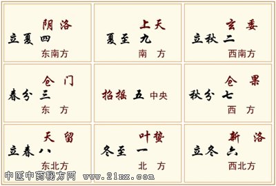 洛书与《内经》 (一)“洛书”结构 “戴九履一,左三右七,四二为肩,六八为足,五居中央”,是在有了文字以后对“洛书”数模结构的表达。 (二)“洛书”之理 “洛书”的数字结构,是在太阳为天文背景下建立的以时间、空间、序列、节律为基本要素的科学模型,是史前哲人以图的方式所构建的古老十月太阳历。 这个模型自其建立之后,深刻地影响着中华民族的传统文化,影响着《内经》理论的建构。 ⒈表达一年不同季节的阴阳消长规律 就“时间”概念而言,五个“奇数”分布在春、夏、秋、冬以及长夏五季,四个“偶数”分布在“四维”。 “奇数”为阳,自冬→春→夏→长夏→秋,其运行过程是1→3→9→5→7,用“奇数”数值的大小客观地表达了一年之中,自然界的阳(热)气由渐盛(1→3→9)到渐衰(9→5→7)的消长过程。四个“偶数”为阴,其布阵表达了一年阴(寒)气自立春→立夏→立秋→立冬是由盛而衰(8→4→2),再由衰而渐盛(2→6→8)的消长过程。上半年阳长阴消,故为“阳”;下半年阴长阳消,故为“阴”。所以,在十月太阳历中,将属阳的上半年之起点“冬至”称为“阳旦”,将属阴的下半年之起点“夏至”称为“阴旦”。这既是阴阳消长理论发生的天文历法背景,也是《辅行诀》中“阳旦汤”“阴旦汤”命名依据。《金匮要略》所载“阳旦汤”之名也如是。 ⒉表达五季五方气候的运行规律(即“五行”) “奇数”为阳,自冬→春→夏→长夏→秋,其运行过程是1→3→9→5→7,就用“奇数”数值的大小客观地表达了一年五季(冬→春→夏→长夏→秋)阳热之气的多少、气温的高低,乃至在此作用下万物生→长→化→收→藏的周期变化规律。按五运六气理论而言,每个季节各有73.05天,而十月太阳历法则为每季72天。 就“空间”概念而言,五个“奇数”分布在东、南、中、西、北五方,四个“偶数”分布在“四维”。同样用“奇数”数值的大小客观地表达了不同地域阳热之气的多少和气温的高低,以及在此影响下不同地域环境之中万物的生长变化。 ⒊表达五行相生规律 五行本意是指五季气候,以及在此作用下万物周而复始的运行变化规律。就时间“序列”而言,五季气候依次循环,如环无端,往复不已。 这一次序科学地反映了春季万物复苏,如“木”之萌发;炎夏万物盛长,枝繁叶茂,此时为全年气温最高,犹如“火”之温热;长夏气温高湿度大,植物开花结实,孕育新的生命,犹如“土生万物”;金秋送爽,万物成熟收获,生机收敛,植物的枝叶枯黄凋谢;严冬气候寒冷,阳热之气如同自然的“水”一样涵藏于地下,万物的生机伏匿敛藏。 ⒋表达万物生长化收藏的节律 在太阳回归年的天文背景下,春(3,木)→夏(9,火)→长夏(5,土)→秋(7,金)→冬(1,水)五季的温(3,木)→热(9,火)→湿(5,土)→燥(7,金)→寒(1,水)气候周而复始的运行不息,万物也因之而有生(3,木)→长(9,火)→化(5,土)→收(7,金)→藏(1,水)的变化状态和过程,天地间的一切事物的运动变化莫不遵循于此。 “五行”之“行”,是指季节气候年复一年地运行不息。在太阳背景下的五季气候运行不息,万物也随之发生相应地变化,事物的一切运动变化莫不遵循于此。这就是五行及其五行相生之序发生的天文学背景。也是“夫五运阴阳者,天地之道也,万物之纲纪,变化之父母,生杀之本始,神明之府也,可不通乎!”之论(《素问·天元纪大论》)的天文历法背景。 ⒌“洛书”背景下的十月太阳历 史前人类是用“洛书”表达十月太阳历的。这一历法的资料在汉族文化的古文献之中有零星记载,也能在《内经》的生命科学知识体系中觅其踪迹。十月太阳历的内容完整的保存在彝族的经典《土鲁窦吉》之中已述。 (三)《内经》对“洛书”数理应用举例 ⒈“始于一,终于九” 《灵枢·九针十二原》“臣请推而次之,令有纲纪,始于一,终于九焉。” 为何“始于一,终于九”是针道的“纲纪”? “始于一,终于九”语就是指“洛书”之数所表达的天文历法、阴阳五行之理。 “洛书”以太阳为坐标,以阴阳符号之数理,表达了自然界四时的阴阳消长,五季气候变化的运行规律(即“五行”)。无论是四时阴阳消长还是五季气候运行,都是临床医生在灸刺治病或者处方用药所应遵循的依据。《内经》中随处可见依据季节气候变化来论证灸刺选穴、进刺深浅,以及刺灸乃至处方用药之宜忌之内容。这就是为何要以“始于一,终于九”作为临证治病的“纲纪”的理由。 ⒉创立北斗历,论证八风致病 在《灵枢·九宫八风》中运用“洛书”之理,构建生命科学中的“九宫”理论,并以此为据,创立了独特的北斗历。以此为据,论证“八风”发病原理。 北斗历为《内经》所独创。这一历法是以北斗星的斗纲(第1、5、7星)所指时空方位来调整太阳回归年时间的历法。此历法一年为366天,是太阳历的闰年。 《灵枢·九宫八风》:“太一常以冬至之日, 居叶蛰之宫四十六日(冬至 一 叶蛰 北方 坎) 明日居天留四十六日(立春 八 天留 东北方 艮) 明日居仓门四十六日(春分 三 仓门 东方 震) 明日居阴洛四十五日(立夏 四 阴洛 东南方 巽) 明日居天宫四十六日(夏至 九 上天 南方 离) 明日居玄委四十六日(立秋 二 玄委 西南方 坤) 明日居仓果四十六日(秋分 七 仓果 西方 兑) 明日居新洛四十五日(立冬 六 新洛 西北方 乾) 明日复居叶蛰之宫,曰冬至矣。(招摇 五 中央)” “太一”有