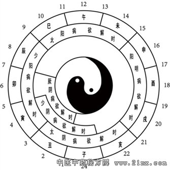 ¡¶É˺®ÂÛ¡·Áù¾²¡“Óû½âʱ”ÔÎÄ·ÖÔØÓÚµÚ9Ìõ¡¢193Ìõ¡¢272Ìõ¡¢275Ìõ¡¢291Ìõ¡¢328Ìõ¡£¾ßÌåÈçÏ£º“Ì«Ñô²¡Óû½âʱ£¬´ÓËÈÖÁδÉÏ”£¨9Ìõ£©£»“ÑôÃ÷²¡Óû½âʱ£¬´ÓÉêÖÁÐçÉÏ”£¨193Ìõ£©£»“ÉÙÑô²¡Óû½âʱ£¬´ÓÒúÖÁ³½ÉÏ”£¨272Ìõ£©£»“Ì«Òõ²¡Óû½âʱ£¬´Óº¥ÖÁ³óÉÏ”£¨275Ìõ£©£»“ÉÙÒõ²¡Óû½âʱ£¬´Ó×ÓÖÁÒúÉÏ”£¨291Ìõ£©£»“ØÊÒõ²¡Óû½âʱ£¬´Ó³óÖÁîÉÏ”£¨328Ìõ£©¡£¿É²Îͼʾ£¨¼ûͼ3£©¡£