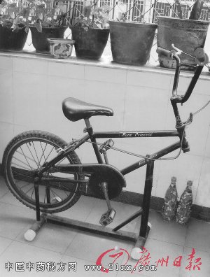 养生达人 长期阅读《老人报》,受到启发,根据自身的情况,我先后做了六款简易的养生神器。平时轮流活动身体,促进血液循环,使胃肠胀闷、胸胁闷痛、腰酸腿痛逐渐消失。一觉天亮,饮食开胃,获益非浅。 1 健身车 我将一部废旧的20寸山地车,配上支座,去掉前轮,就成了一部轻巧的健身车(图①)。放在阳台上,每天早晚骑在车上,手、脚、臀部不停地运动,每次10~20分钟。保持身体灵活,提高心肺功能,延缓衰老。 专家点评:自制健身车是模拟户外运动的有氧健身器材(相对于无氧健身器材),可以在足不出户的情况下进行锻炼,这种练习方式可有效改善髋、膝、踝部的血液循环、改善局部生理机能,可有效防止骨骼的退化和增加下肢的骨骼机能,另外对偏瘫患者肢体功能的恢复也有相当好的效果。 2 腰背按摩器 我做了两个腰背按摩器。按摩器(图②)由两节塑料管贴上1厘米的塑料珠,配上支架,固定在椅背上,椅面上放一个转盘,就成一张腰背按摩椅了。坐在转盘上,背部或腰部贴近按摩柱,左右转动腰背,各20~30次。把另一个腰背按摩器(图③)横置于卧室入门墙上适当位置固定。按摩腰背时,背部靠近按摩柱下蹲,向上向下推动滚柱按摩腰背20~30次,感到腰背轻松,振奋精神,固本强肾。 专家点评:与撞背法相似,可以刺激背部重要经络及穴位,起到疏通经气、振奋阳气作用。腰背按摩转筒上的塑料珠在腰背滚动可以放松背、腰部肌肉,可以缓解腰背部的疲劳,但不要长时间按摩。 3 滚筒 脚踏滚筒健脚健身(图④)。做一个长46厘米的木条圆筒,装上底座的滚筒,放在床前。每天晚上睡前,坐在床前,光着双脚踏在滚筒上,用力向前向后转动,再上下踩踏滚筒,早上起床坐在床前,同样踩踏滚筒,每次各5~10分钟,刺激双脚各个穴位,赶走疲劳,安神醒脑,足跟痛也被我踏走了。 专家点评:脚又被称作人体的第二心脏,但脚离人体的心脏最远,而负担最重,因此,这个地方最容易导致血液循环不好。当用脚踏滚筒健脚时,可以刺激相应反射区,促进人体血液循环,调理内分泌系统,增强人体器官机能。 4 牵引器 把一个小滑轮固定在阳台门框上,穿入一条塑胶跳绳,调整适合长度,门框一侧上钉一个挂钩,未使用时,将绳子挂到挂钩上,就成了一个上肢牵引器(图⑤)。两手握住手柄,左右手一上一下拉动,每次3~5分钟,锻炼手臂、肩关节,改善肩关节的活动功能,增强手臂、肩部力量,消除肩部疼痛。 专家点评:自制上肢牵引器方便进行锻炼,使胳膊上下拉动,可以起到滑利关节、活动筋骨作用,更好地帮助防治肩周炎。坚持进行锻炼,能收到很好的辅助效果。