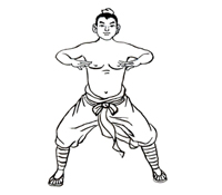 动作要领:两脚开立,自上而下放松,舌抵上腭,双目平视。