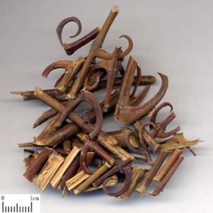 【来源】 为茜草科植物钩藤或华钩藤及其同属多种植物的带钩枝条。春、秋采收带钩的嫩枝,剪去无钩的藤茎,晒干,或置锅内蒸后再晒干。