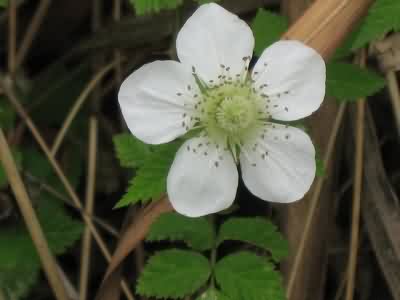 【原形态】 常绿灌木。茎呈弯曲状,末端着地能生根发新苗,茎枝及叶柄上疏生微曲的硬刺并密被红褐色硬粗毛。叶革质,互生,卵圆形至圆形,长7~15厘米,宽6~13厘米,基部心形,边缘有浅缺刻及锯齿,裂片先端尖或钝,上面初有绵毛,后脱落,下面密生灰白色柔毛,主脉及侧脉上生红褐色硬粗毛及稀疏的硬刺,叶柄长2~6厘米,托叶早落。夏初,叶腋单生1花或簇生数花,白色,大形,直径约3厘米,花下苞片广卵形,两面有细毛,花柄短;花萼5裂,宿存,两面有赤褐色密毛,裂片广卵形或椭圆形;花瓣5枚,广椭圆形至近圆形,边缘波状。聚合核果球形,成熟时为红色。