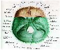 颅后窝 posterior cranial fossa: 颅后窝是颅腔对外联系的主要局部通道,窝内孔裂大并均位于通过两侧内、外耳道的“理想”横线上,由中间向两侧分别为:枕骨大孔 foramen occipitale magnum、舌下神经管、颈内静脉孔、内耳门。通过枕骨大孔的主要结构有,脊髓、三层脑脊髓被膜及其间两腔隙、椎动脉、副神经根、脊髓前后动脉。对通过枕骨大孔内诸结构最有威胁的是其上方的小脑扁桃。通过颈内静脉孔的有颈内静脉、迷走神经、舌咽神经、副神经。通过内耳门的有面神经、听神经和前庭神经。